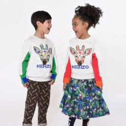 Yellow sweatshirt for girls, by Agatha Ruiz de la Prada. Made from soft cotton jersey, it has a multi-coloured sequin rainbow design and puffed organza sleeves.