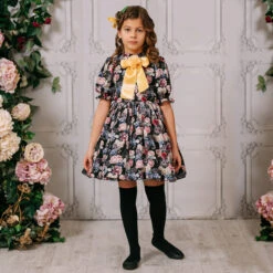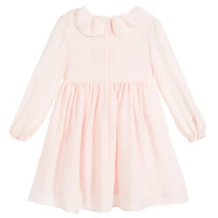 Baby girls white dress and knickers set by Ancar, Exclusive to Childrensalon. Both pieces are made in soft cotton poplin, fully lined and embroidered with pretty flowers. The dress has lace trim on the shoulder, collar and hem and fastens with buttons on the back.