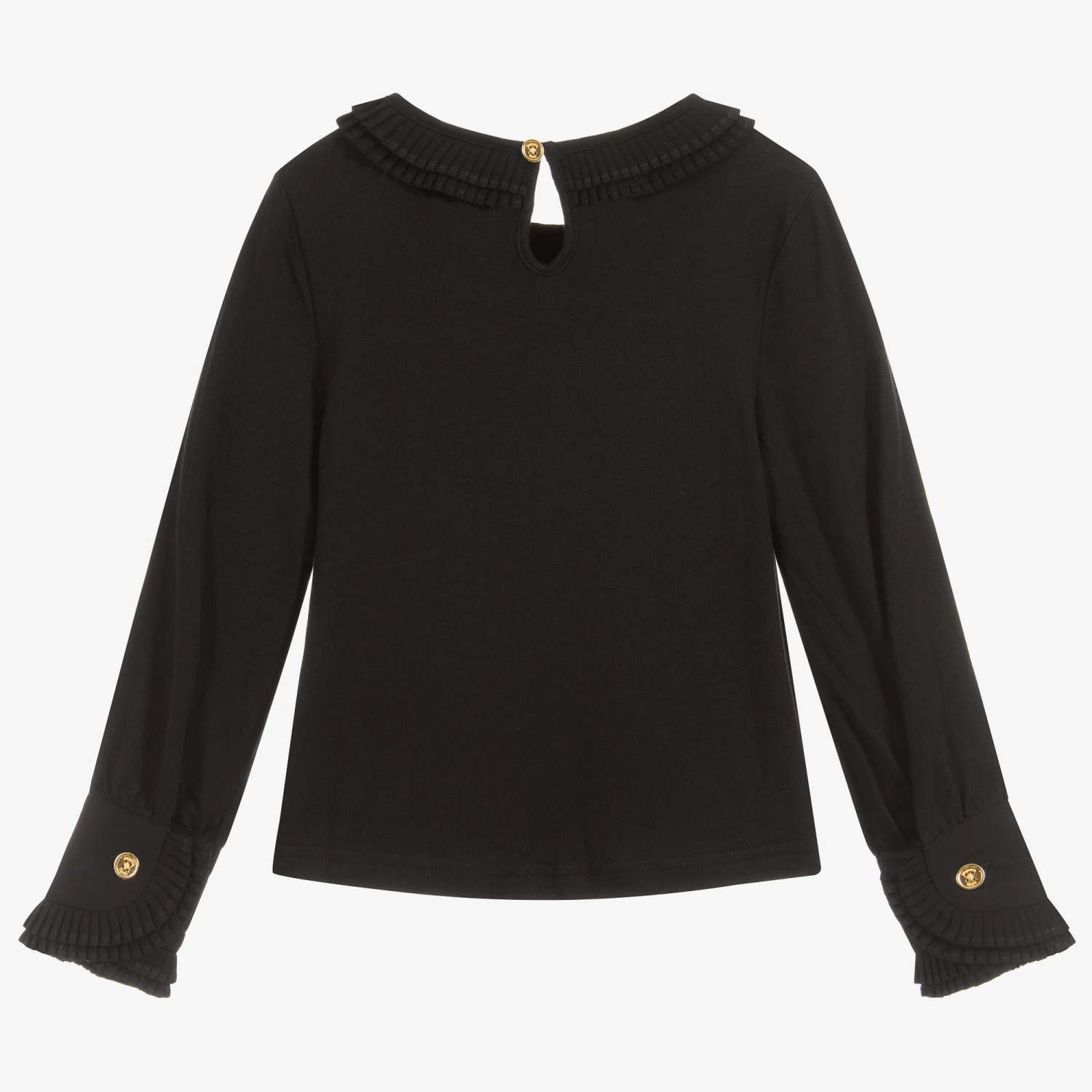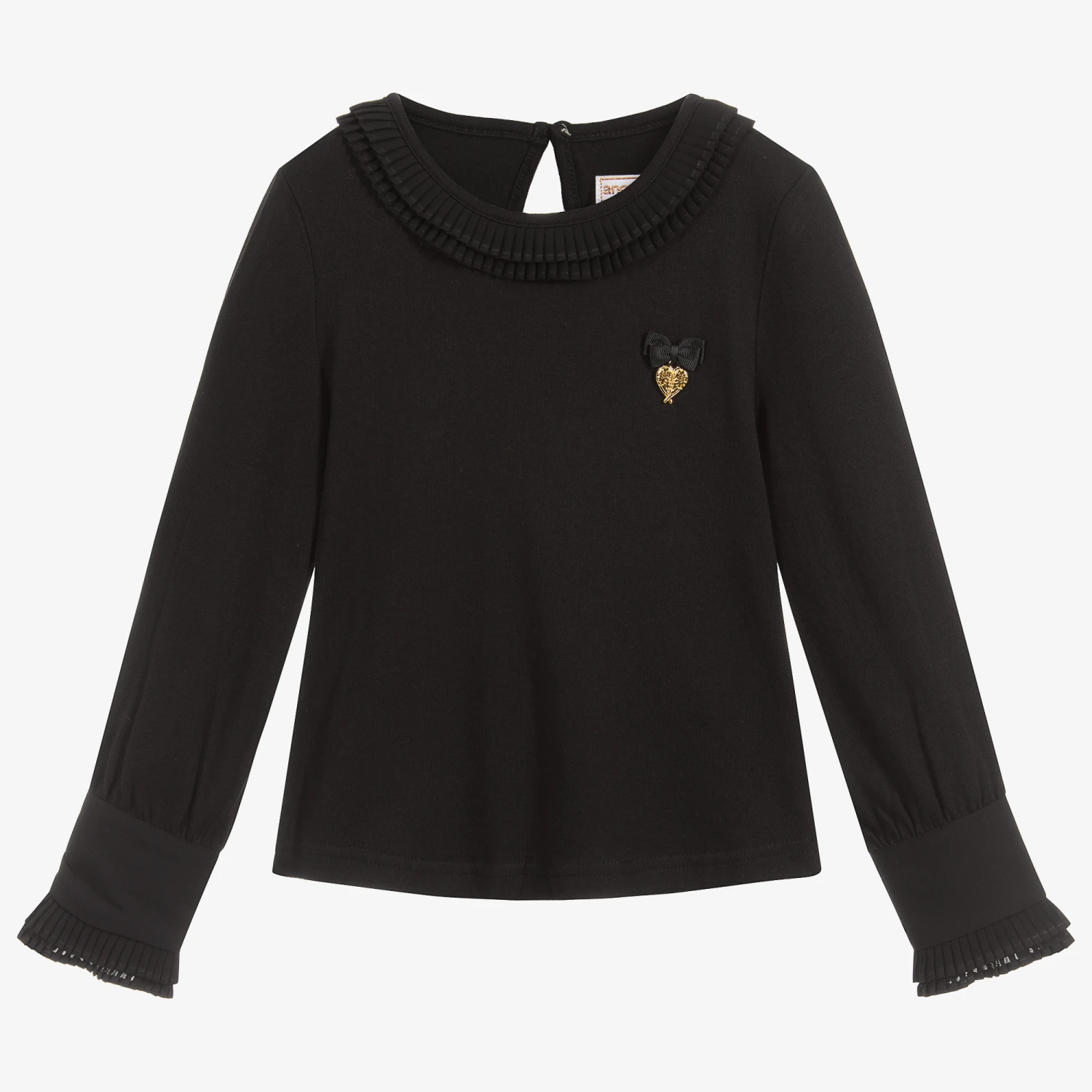 Girls comfortable and stylish top from Angel’s Face, made in a soft cotton and modal blend jersey. It has delicate pleated chiffon detailing around the neckline and cuffs, with gold logo button fastenings and the brand’s signature heart charm and bow.