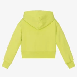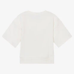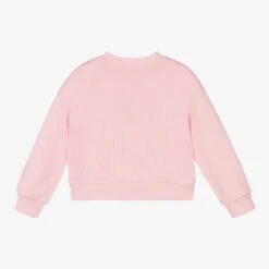 Neon coral pink sweatshirt for girls by Billieblush. Made with soft cotton sweatshirt jersey, it has a neon pink and orange sequinned crab motif with a French printed slogan on the front. It has a gathered hem.