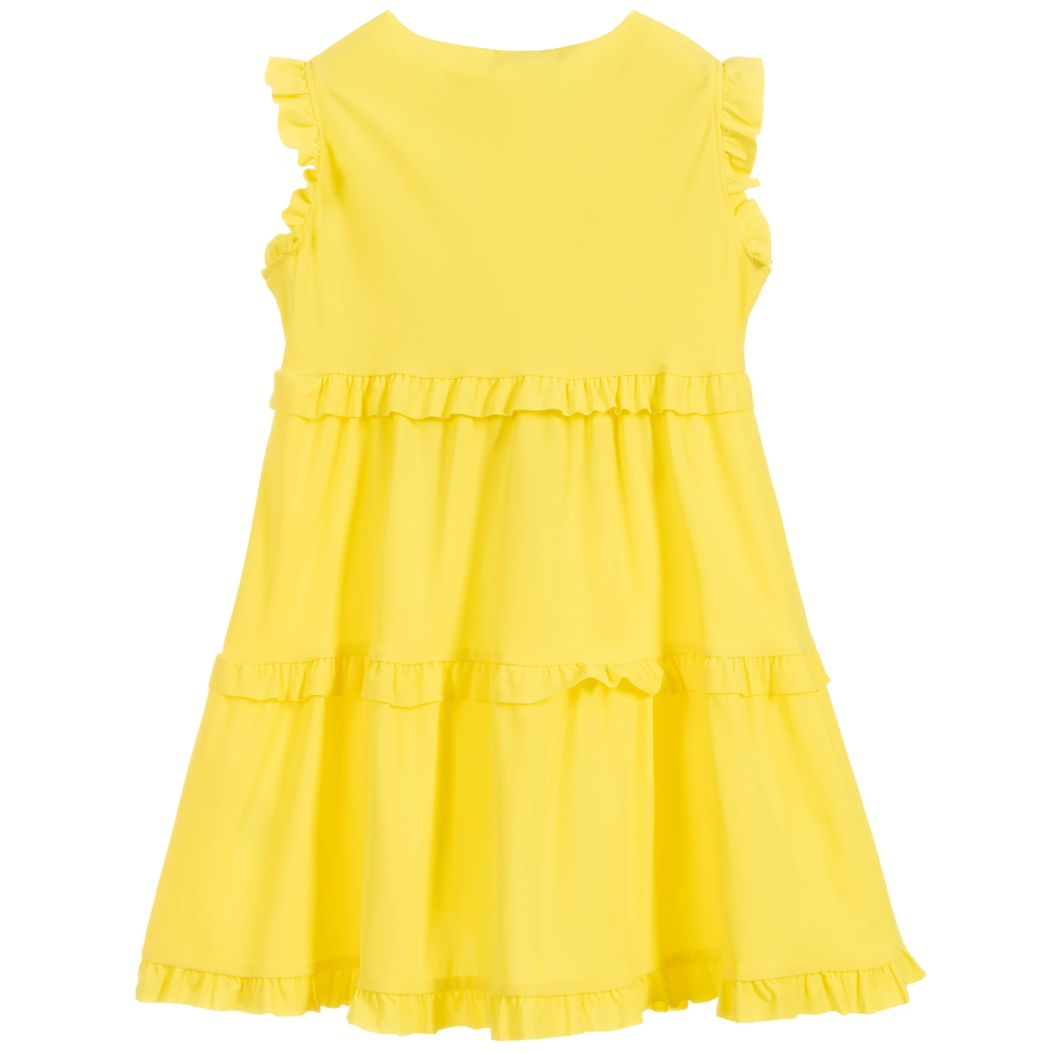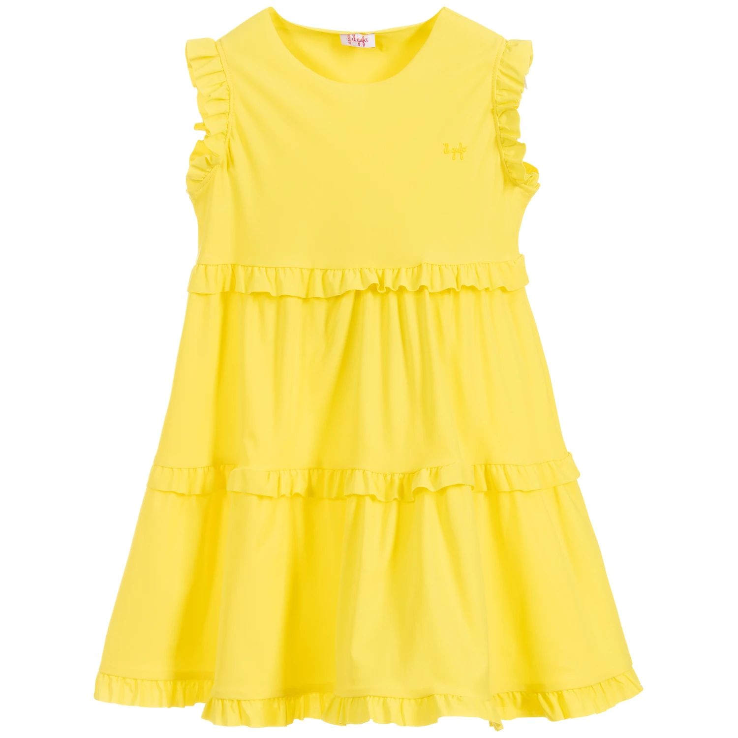 A bright yellow tiered frilled dress for girls byĀ Il Gufo. Stretchy, lightweight and silky, it is made in ‘TechnicalĀ SensitiveĀ®’Ā fabric, developed to be comfortable, breathable, easy to care for and wrinkle-free.