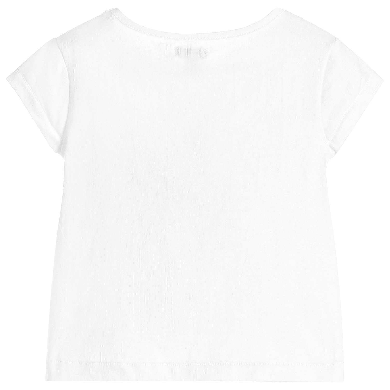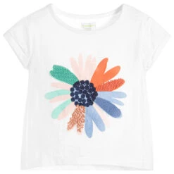 The colourful and textured daisy print on this girls T-shirt, by Margherita Kids, reminds you of warm summer days. Soft and comfortable to wear it is made from cotton jersey and has a longer shaped hem at the back.
