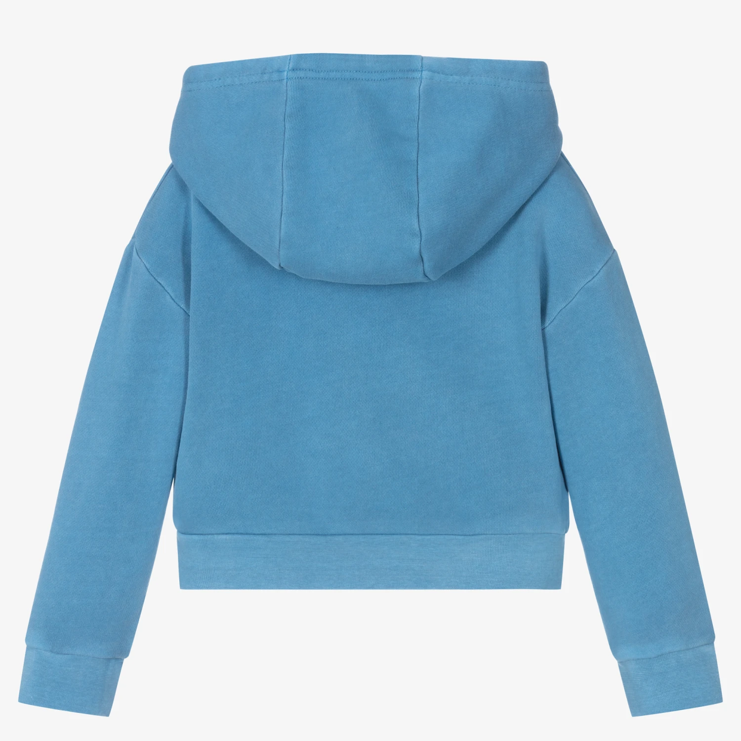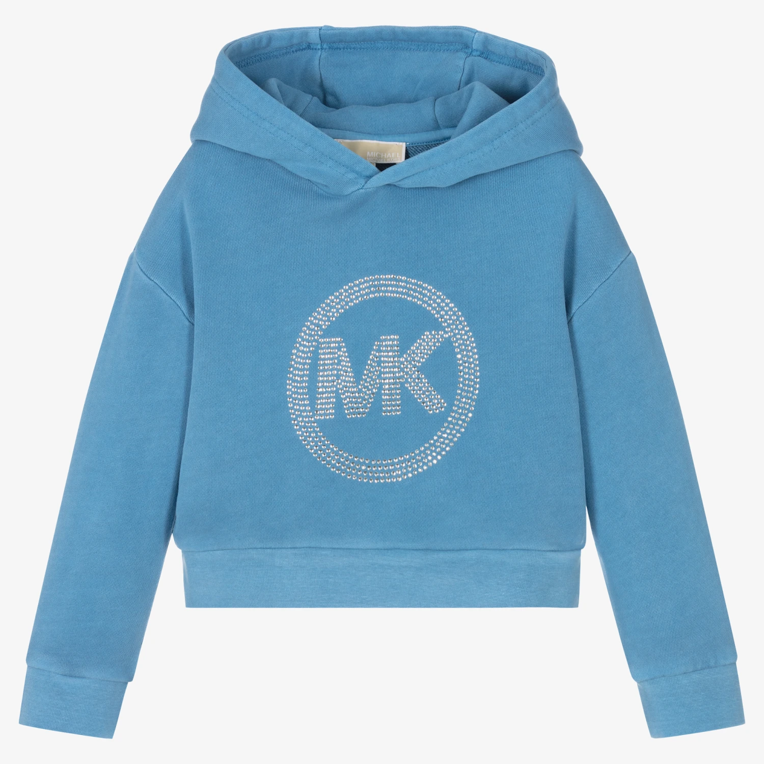 Pretty blue hoodie for girls, by Michael Kors. Made in soft cotton jersey, it has a sparkling silver diamanté logo appliqué on the front for a casual and glamorous look.