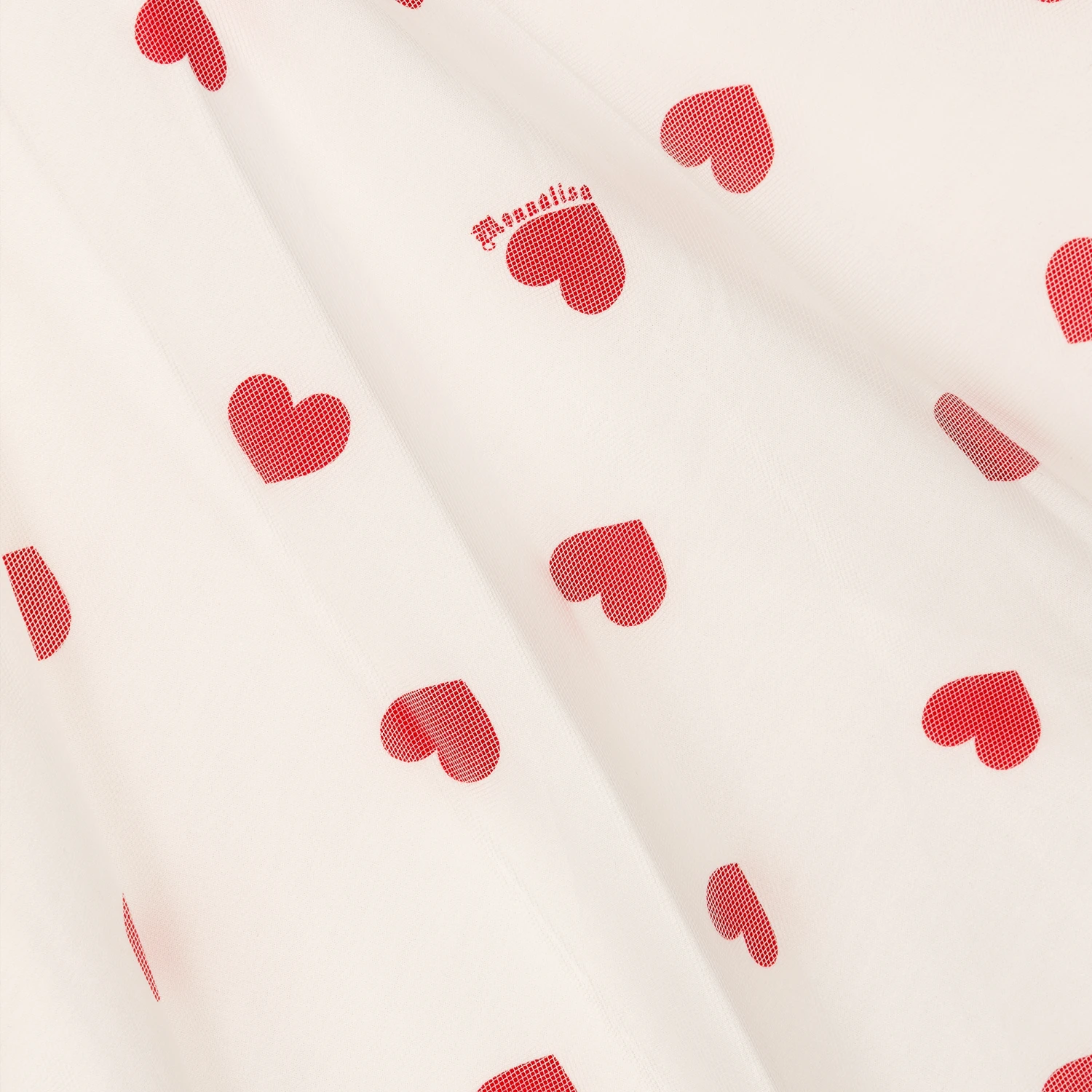 Girls white cotton and tulle dress by Monnalisa. Made in smooth cotton poplin, the fabric has a red hearts print. There is a white tulle overlay and ruffle shoulders in matching tulle. Fully lined in cotton for comfort, there is a layer of stiff petticoat tulle to create volume and shape. The dress fastens on the back with a concealed zip.
