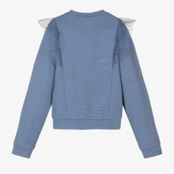 Lilac purple sweatshirt for girls by Moschino Kid-Teen, inspired by the adult collection. This comfortable piece is made in a soft, stretchy cotton and viscose blend jersey with a lovely sheen. There are dropped shoulders and a vintage-style floral baby giraffe and logo print on the front.