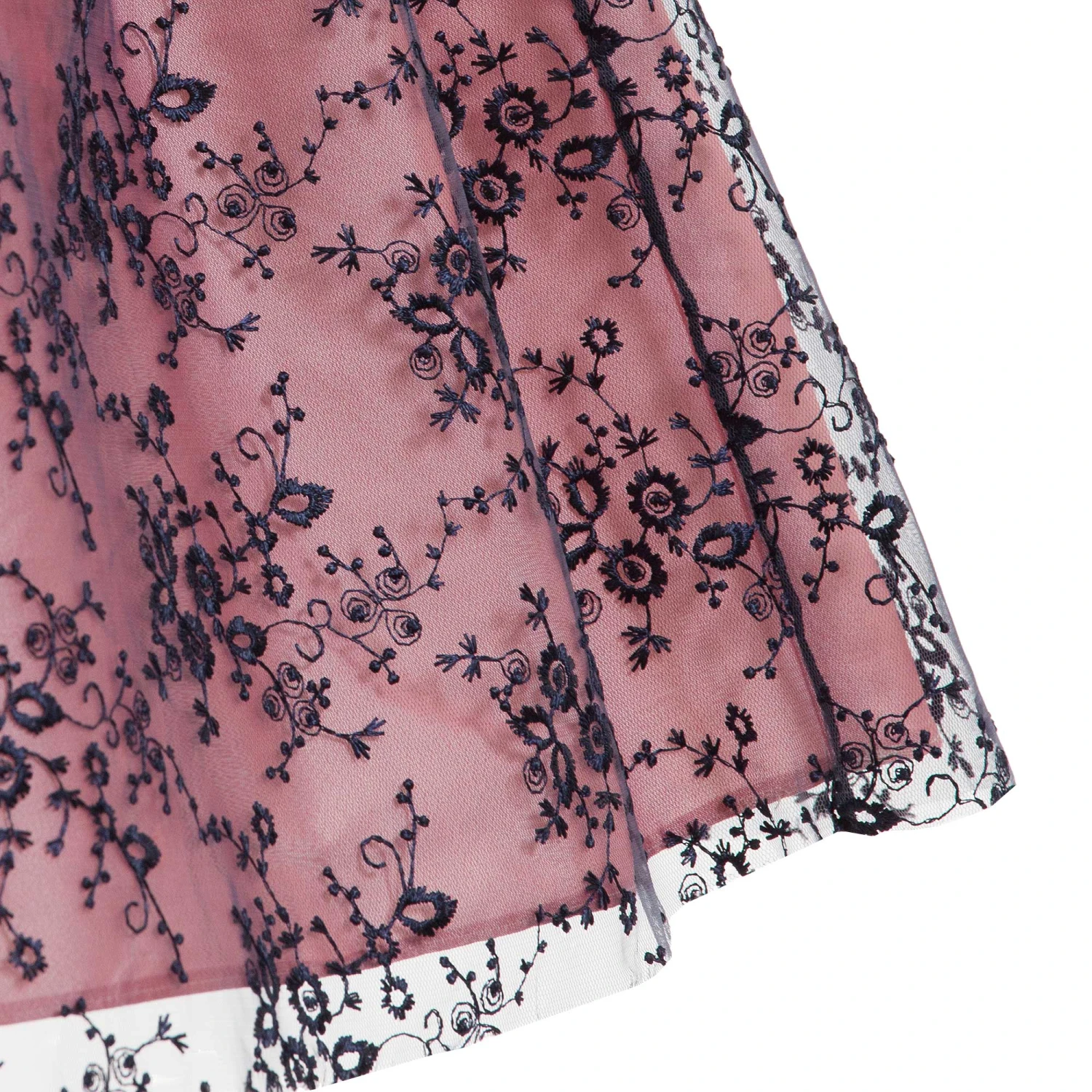 - Overlay: 100% polyester (lightweight embroidered lace)