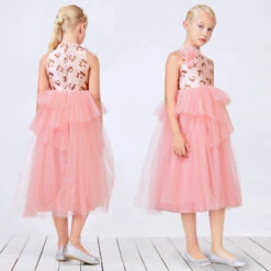 Lovely ivory, embroidered tulle dress by Sarah Louise with a beautiful bodice encrusted with silver beads, sequins and pearls. Sleeveless, this elegant design has a fabulously full, gathered skirt made up of layers of tulle, netting and satin. The dress does up at the back with a concealed zip, concealed with tiny, decorative, fabric-covered buttons. The model is wearing a separate petticoat under the dress for a fuller look.