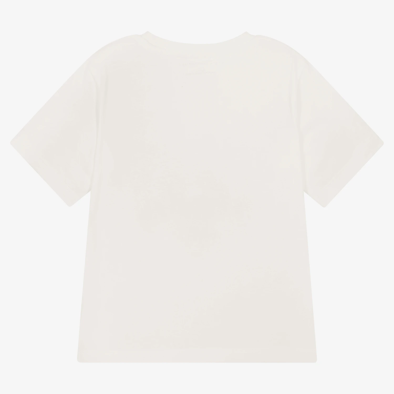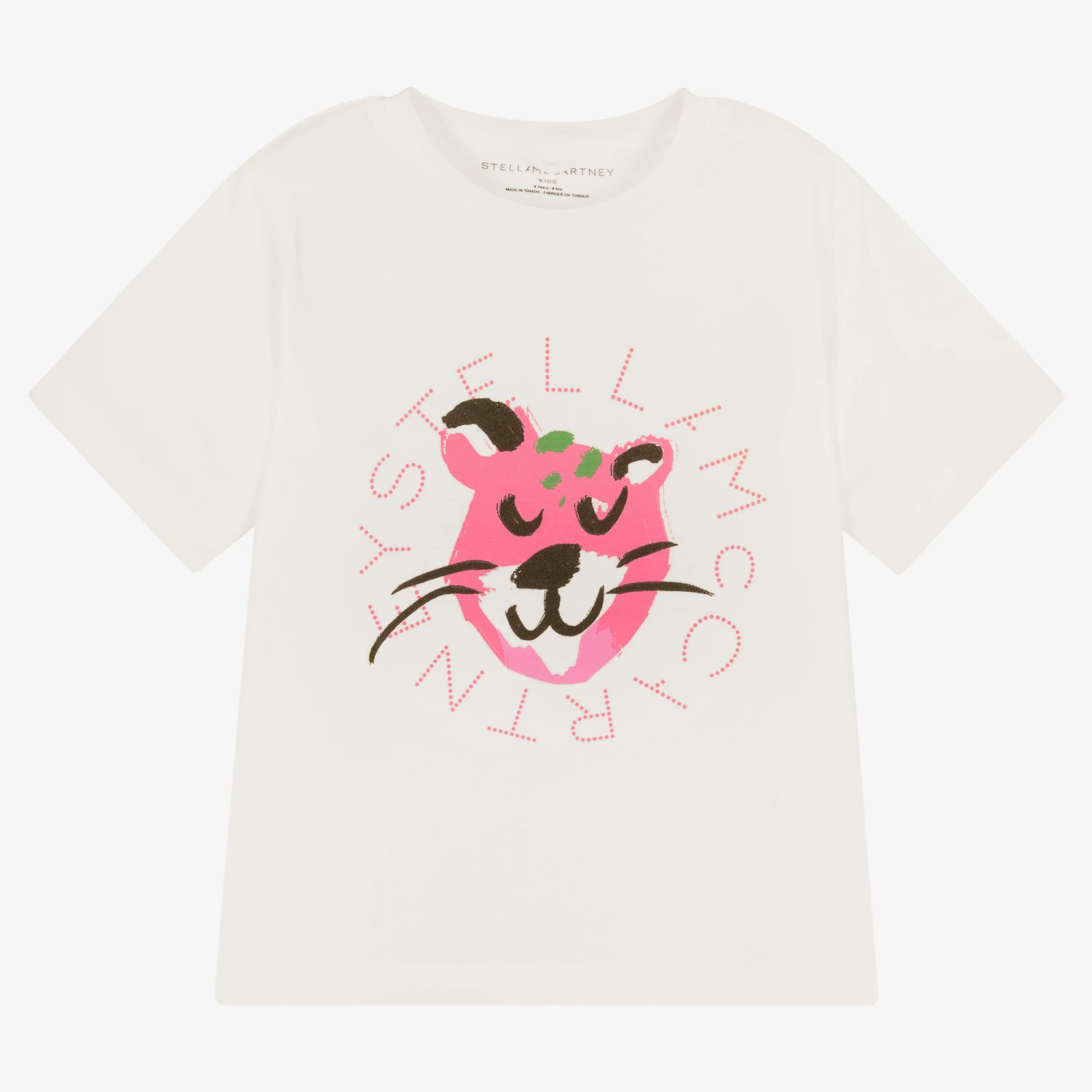 Designed by British brand Stella McCartney Kids, this casual ivory T-shirt is for girls looking for an addition to their everyday wardrobe. Made in soft organic cotton jersey, it has the brand’s circular logo printed in pink on the front, with a cartoon pink leopard for a bold pop of colour.