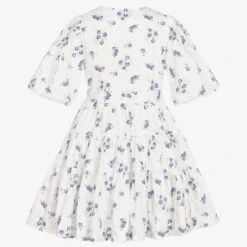 Girls beautiful ivory broderie anglaise dress by Stella McCartney Kids, made in pure silk organza. Forming part of the designer’s festive capsule collection, this special occasion design has cutwork lace ruffle details on the front and back with a matching hemline. There are delicate puff short sleeves with broderie anglaise trims and concealed back zip fastening. It is fully lined in smooth cotton poplin.