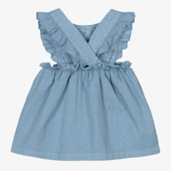 Girls dark navy blue and ivory check dress by Tartine et Chocolat, made from a mid-weight woven viscose blend. Fastening on the back with a zip, it has capped sleeves, a pleated skirt and silky satin lining.